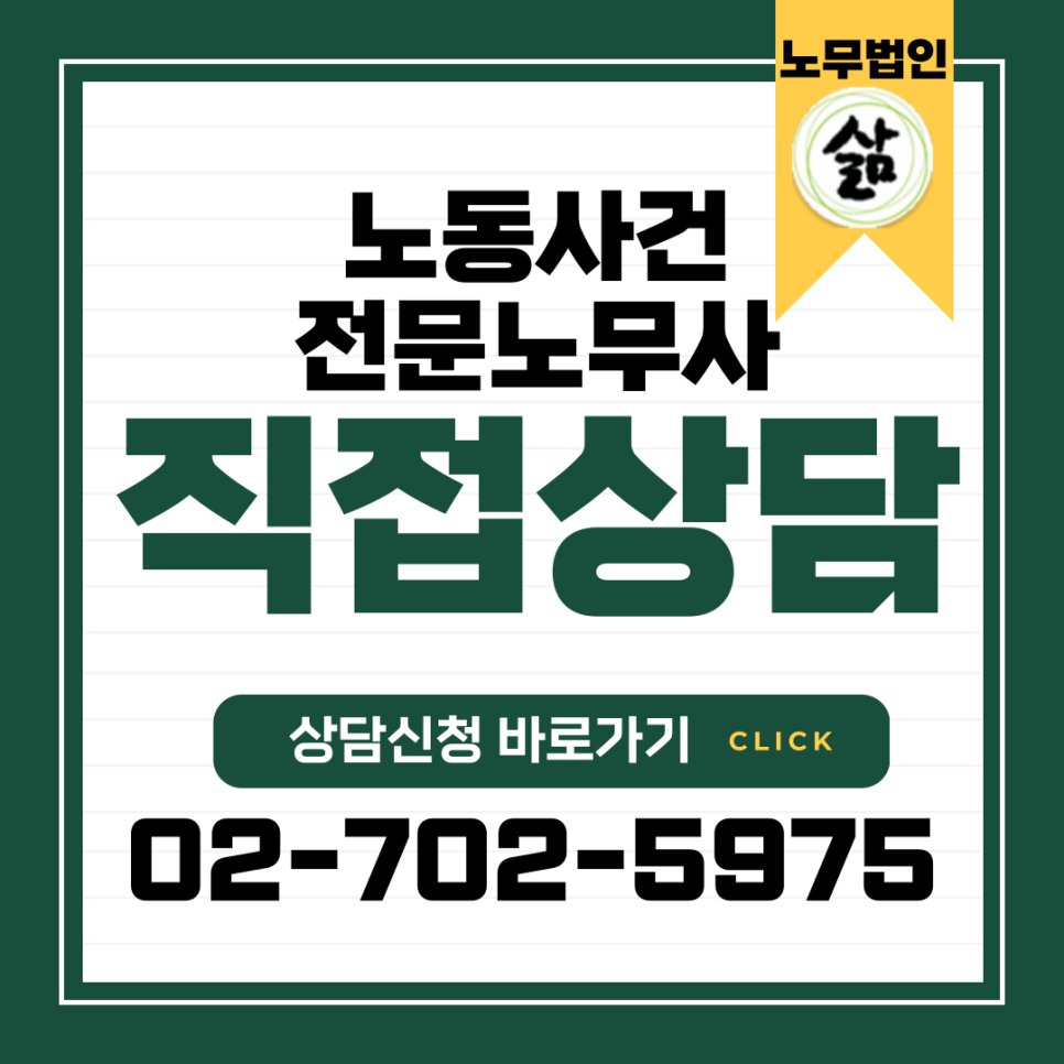 - 노무법인 삶은 예약 대면 상담이 원칙이며, 원하시는 경우 전화상담도 가능합니다.